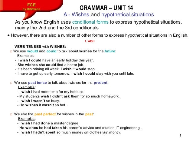 Fce Unit 14 Grammar Contents Wishes Hypothetical Situations