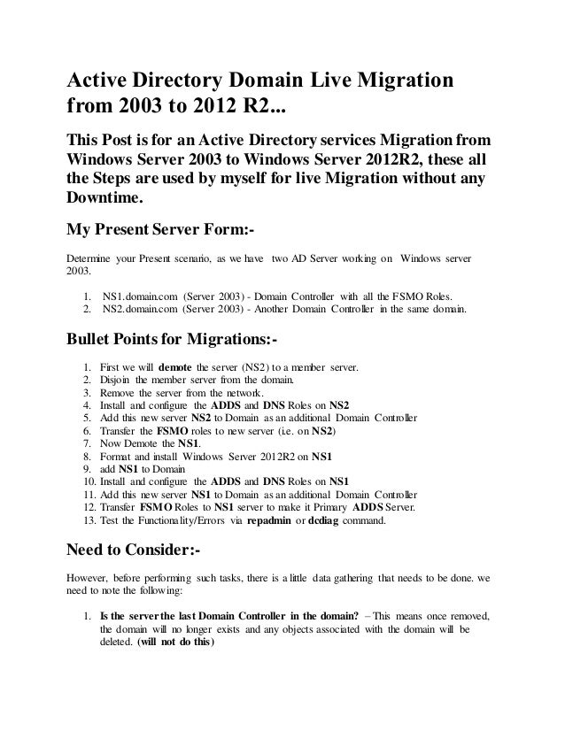 Active Directory Domain Live Migration From 03 To 12 R2